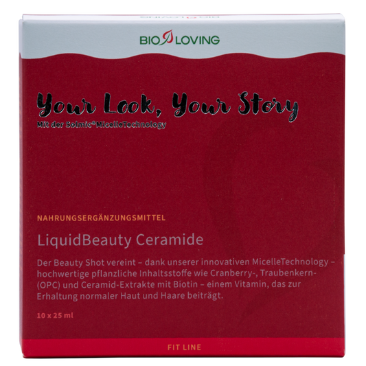Liquid Beauty Ceramide | 10 x 25 ml | mit 30 mg Ceramosides™ (flüssige pflanzliche Ceramide), Biotin, OPC & Cranberry | wasserlöslich mit Solmic® MicelleTechnology